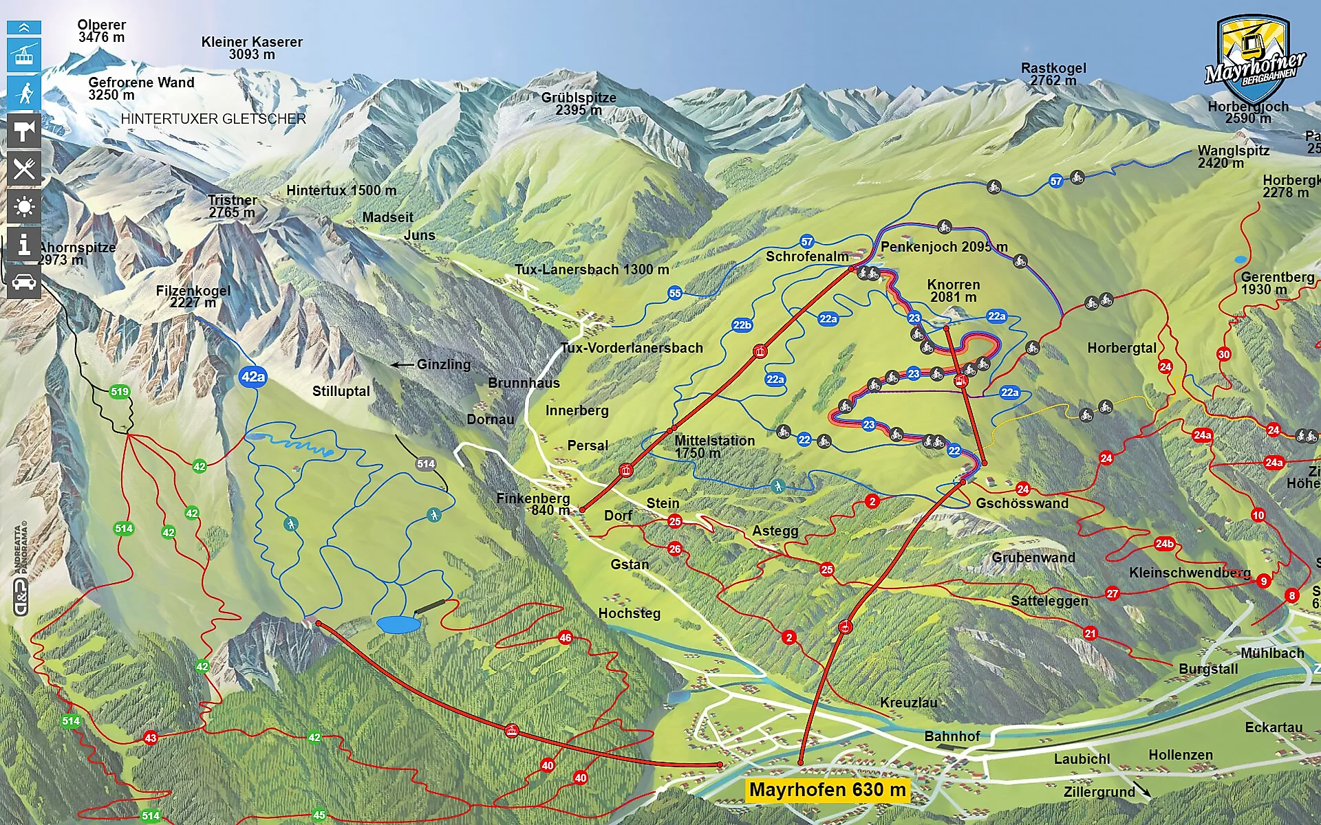 Auch im Sommer sind Bergregionen ein beliebtes Freizeit- und Urlaubsziel. Als digitales Overlay einer Sommerpanoramakarte stellt die Hikemap das komplette touristische Sommerangebot interaktiv und dynamisch navigierbar dar. Sie informiert in Echtzeit über den Seilbahnstatus, Wanderrouten, Bike-Strecken, Gastronomie, Bergattraktionen, lokalen Highlights und Wetterbedingungen in Echtzeit und mit Direktlinks zu relevanten Webseiten und Webcams. Spezielle Freizeitangebote wie z.B. Themenparks können auch auf einer eigenen interaktiven Leisuremap präsentiert werden.